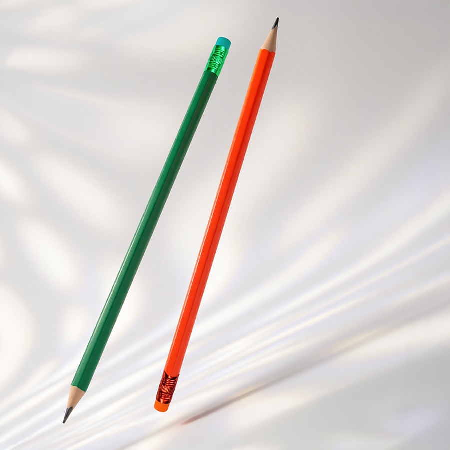 Пластиковый чернографитный карандаш с повышенными чиночными свойствами. Ластик из TPR, феррул алюминиевый. Если пластиковый карандаш ломается, на корпусе не останется острых сколов.
